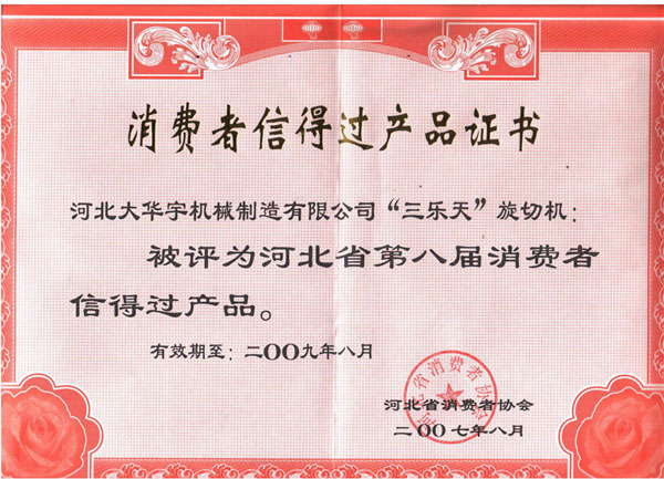 消費(fèi)者信得過產(chǎn)品證書